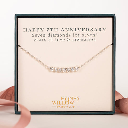 7th Anniversary Necklace - 7 Diamonds for 7 Years - Lab Grown Diamonds - Silver