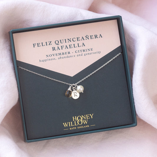Meaningful gifts for her quinceanera: personalised jewellery ethically handmade in England for over a decade. Commemorate your loved one's quinceanera with jewellery that celebrates her. A meaningful memento that she can wear every day.