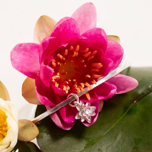 Personalised Waterlily Flower Bangle - Energy - Silver