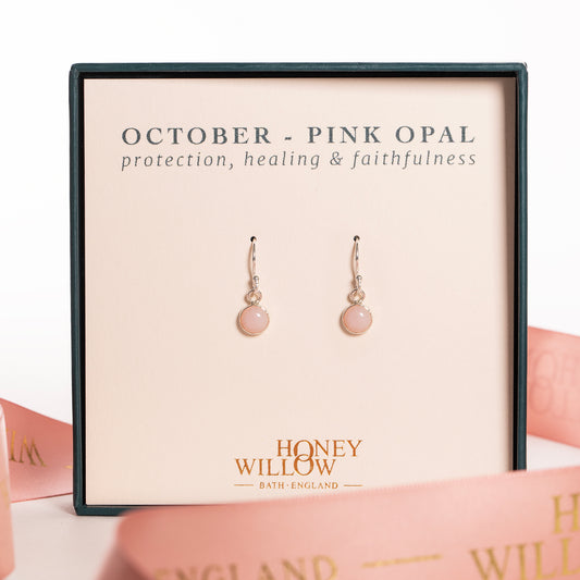 October Birthstone Drop Earrings - Pink Opal - Silver & Gold