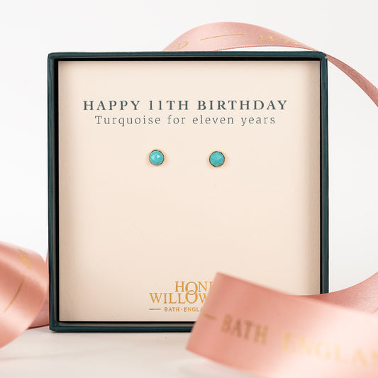 11th Birthday Gift - Turquoise Stud Earrings - Silver & Gold