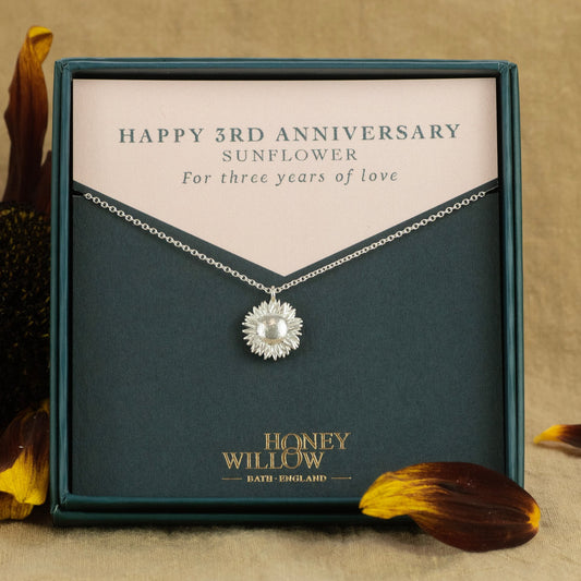 3rd Anniversary Gift - Sunflower Necklace - Silver