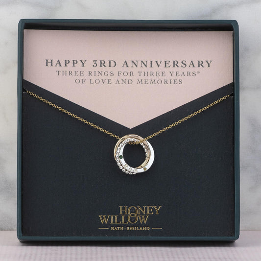Personalised 3rd Anniversary Birthstone Necklace - The Original 3 Rings for 3 Years Necklace - Petite Silver & Gold
