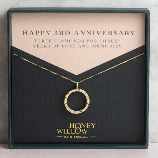 Celebrate your 3rd anniversary with a meaningful keepsake that she will love. Treat her to personalised jewellery handmade in England for over a decade. Beautifully presented, ready for gift-giving, this is the perfect way to commemorate your three years of love and memories.