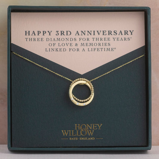 3rd Anniversary Necklace - 3 Rings for 3 Years - Tiny Links