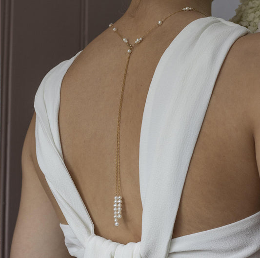Pearl Long Back Bridal Necklace - Silver & Gold - Juliet