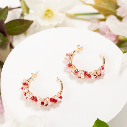 Spring Colour Palette Hoop Earrings - Pink Gemstones & Gold
