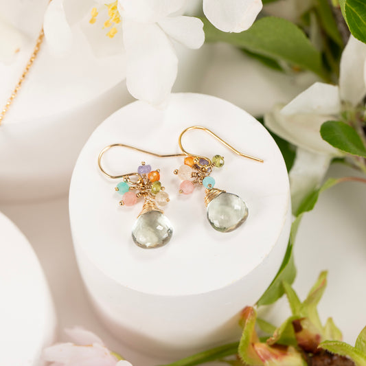 Spring Colour Palette Inspired Earrings - Green Amethyst Gemstones & Gold