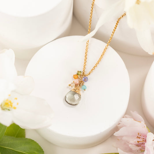 Spring Colour Palette Inspired Necklace - Green Amethyst Gemstones & Gold