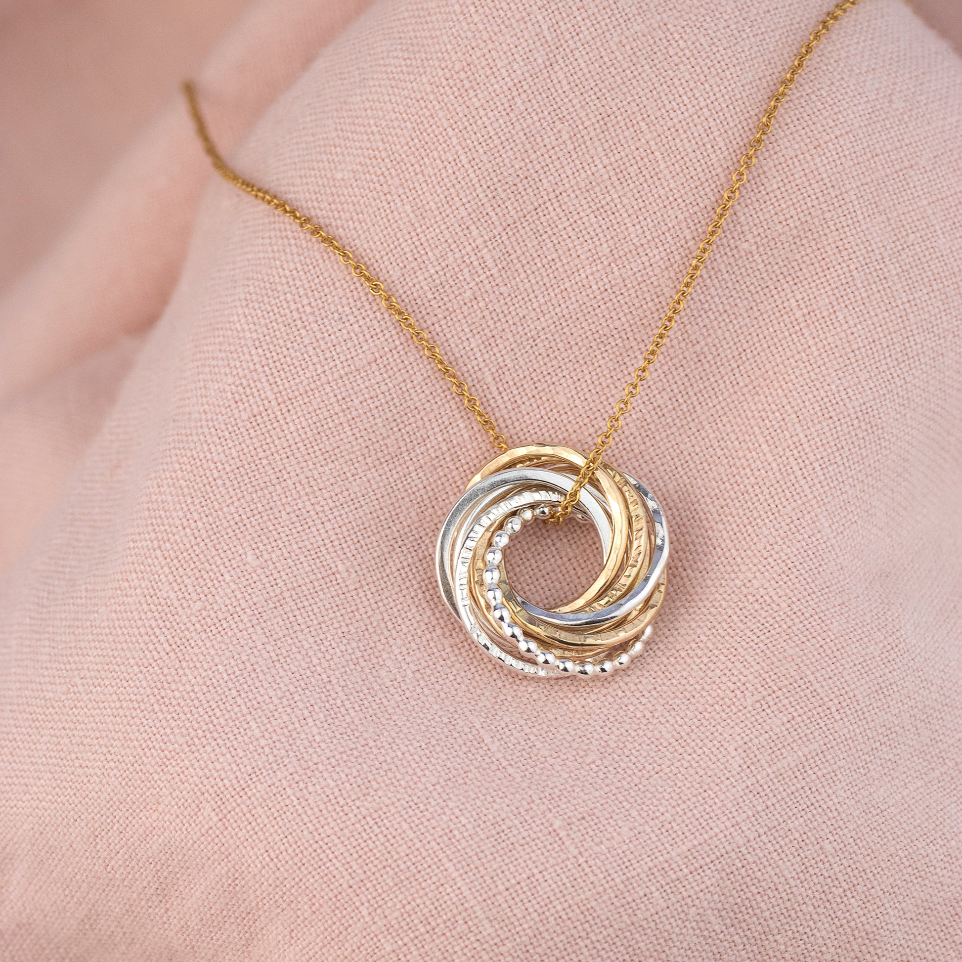 10th Anniversary Necklace - The Original 10 Rings for 10 Years Necklace - Petite Silver & Gold