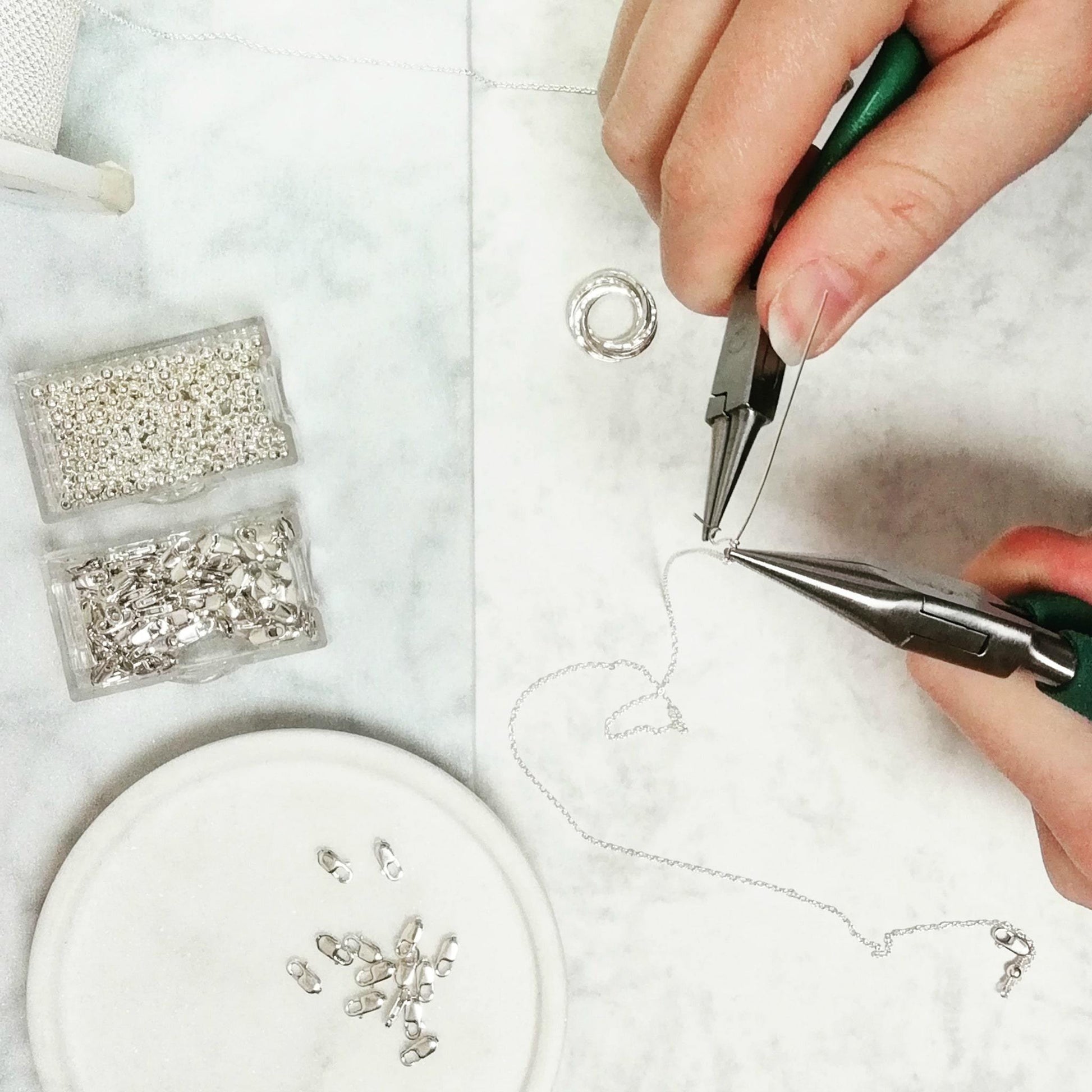 Handmade to order with sterling silver and a tiny semi-precious birthstone.