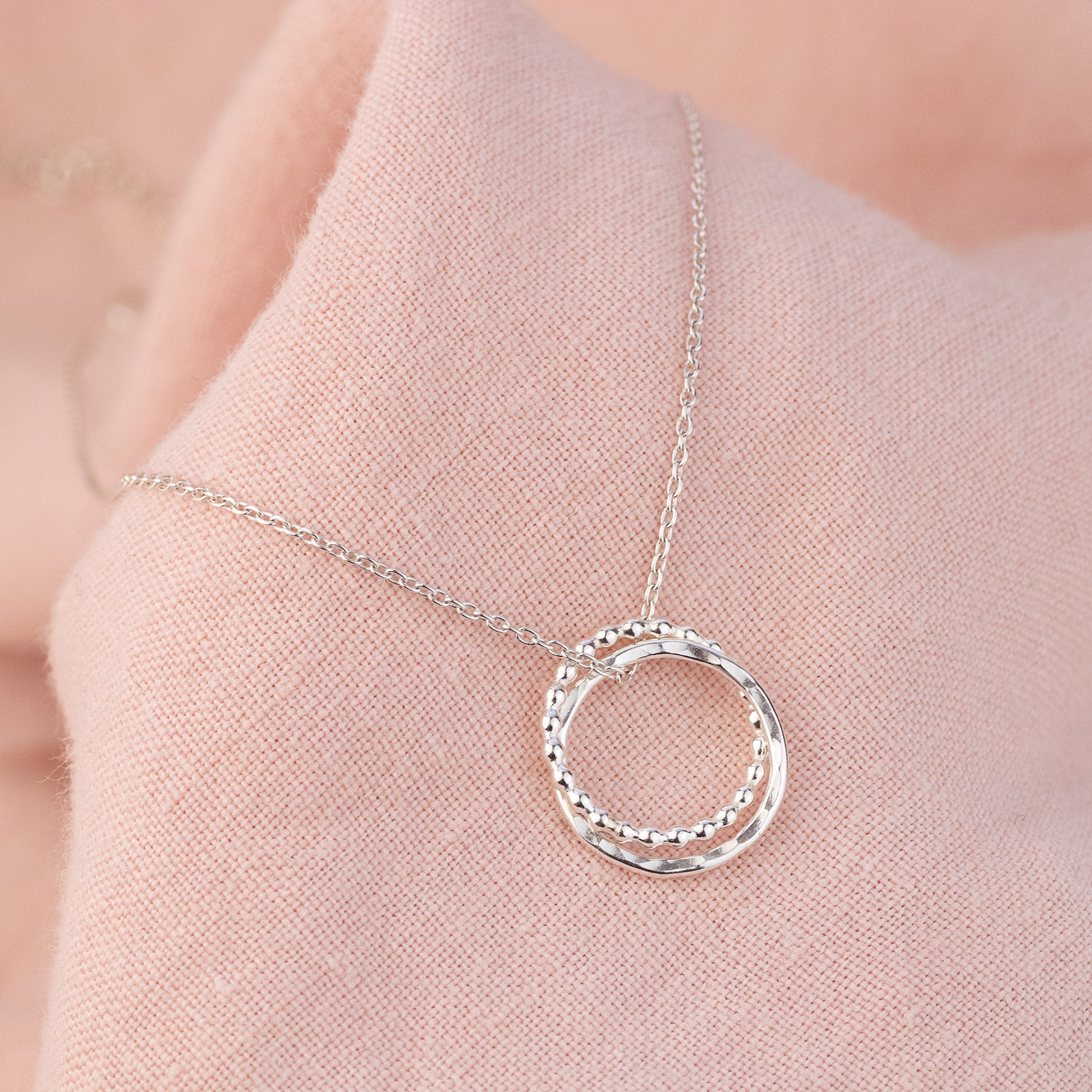 2nd Anniversary Necklace - The Original 2 Rings for 2 Years Necklace - Petite Silver