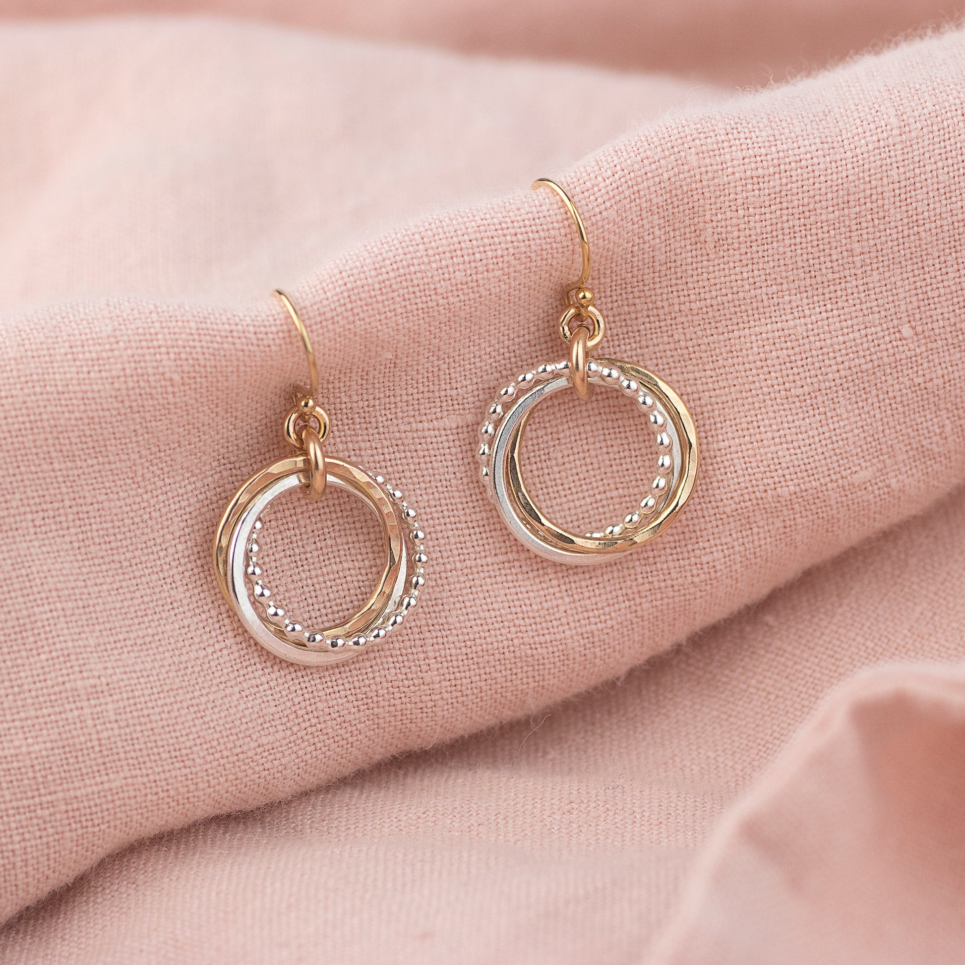 Circles symbolise infinite love, strength, protection and unity.  Three circles are linked on each earring to symbolise her three decades.  You can personalise the note inside the gift box, see image 3 for an example.