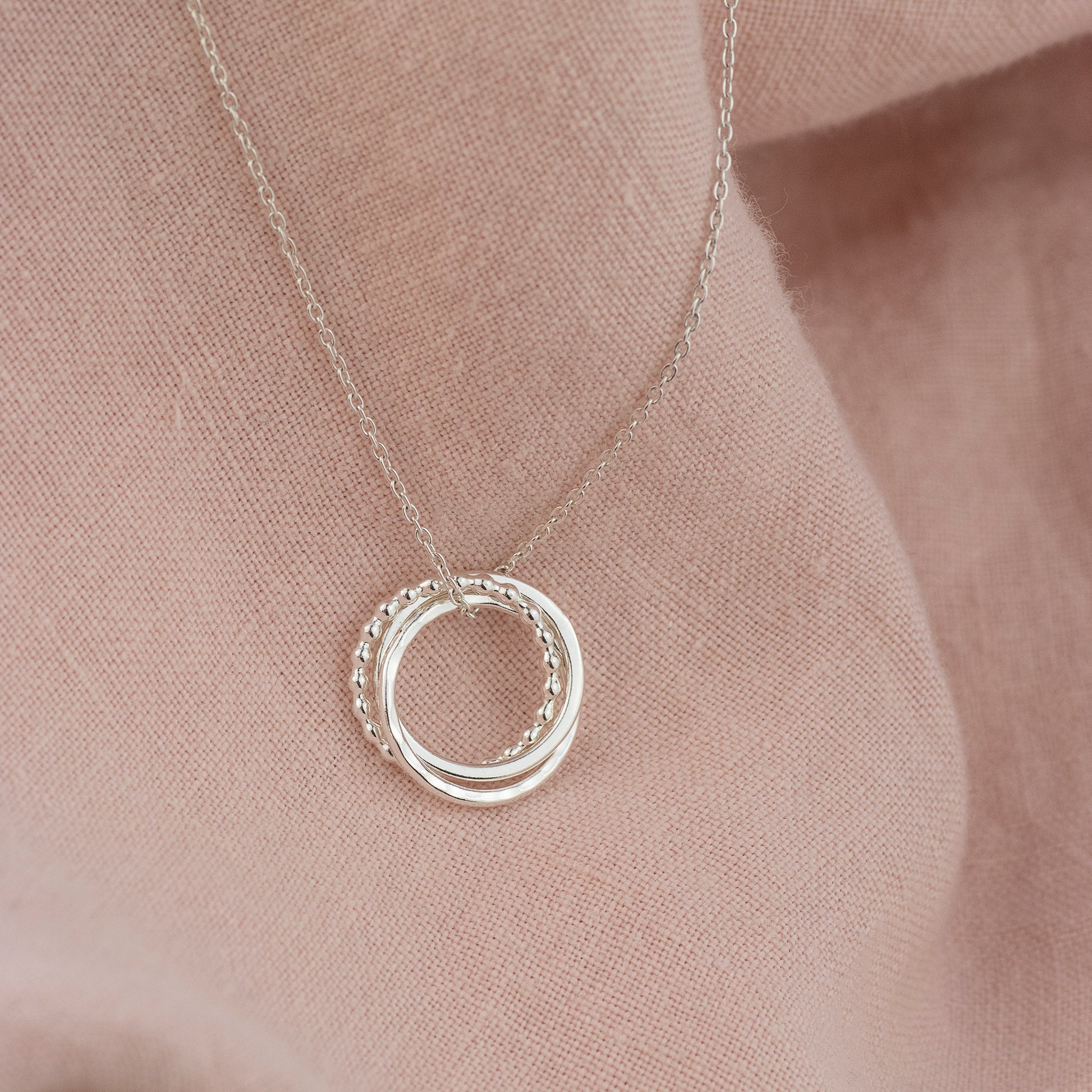 Give your loved one the original three rings for three years® necklace, designed and handmade in England with love and care for over a decade.