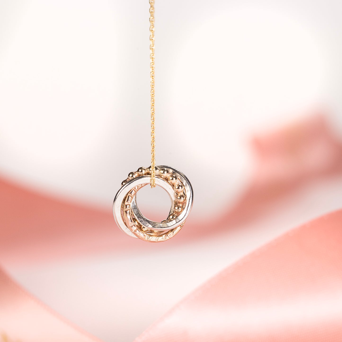 4 Friends Necklace - 9kt Gold, Rose Gold & Silver Love Knot