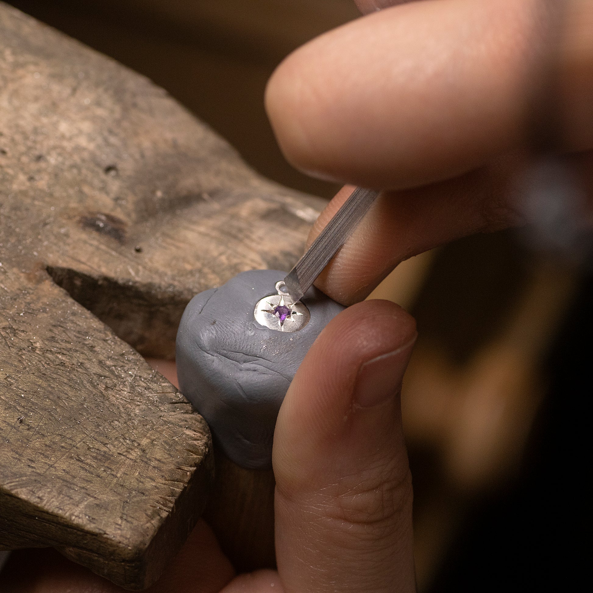Set with her birthstone. Image 3 shows the birthstones we use. Please note that the diamond is lab-grown. A lab-grown diamond is made from the same material as a mined diamond, but without the ethical and environmental problems.