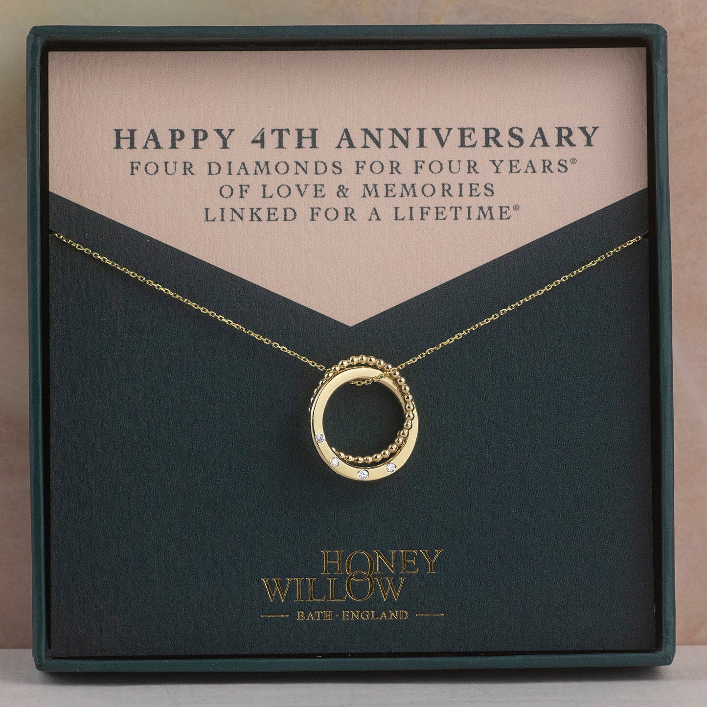4th Anniversary Necklace - 4 Diamonds for 4 Years - 9kt Gold
