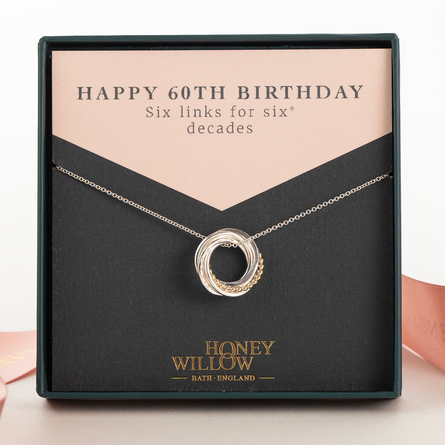 60th Birthday Necklace - The Original 6 Links for 6 Decades - Petite Silver & 9kt Gold