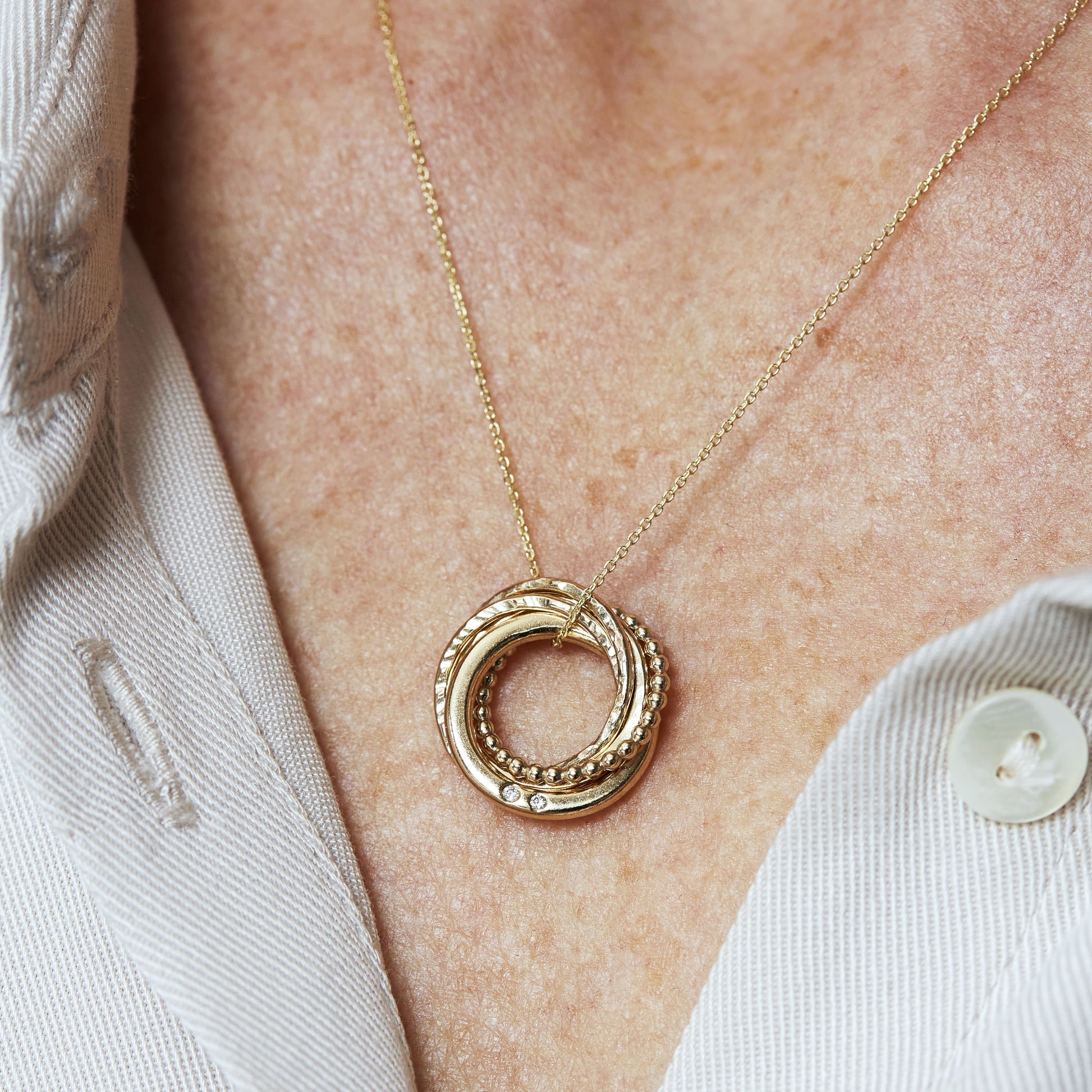 Circles symbolise infinite love, strength, protection and unity. Six circles are linked to represent your six decades of love. One link is set with six lab-grown diamonds for your diamond wedding - six diamonds for six decades of love and memories.