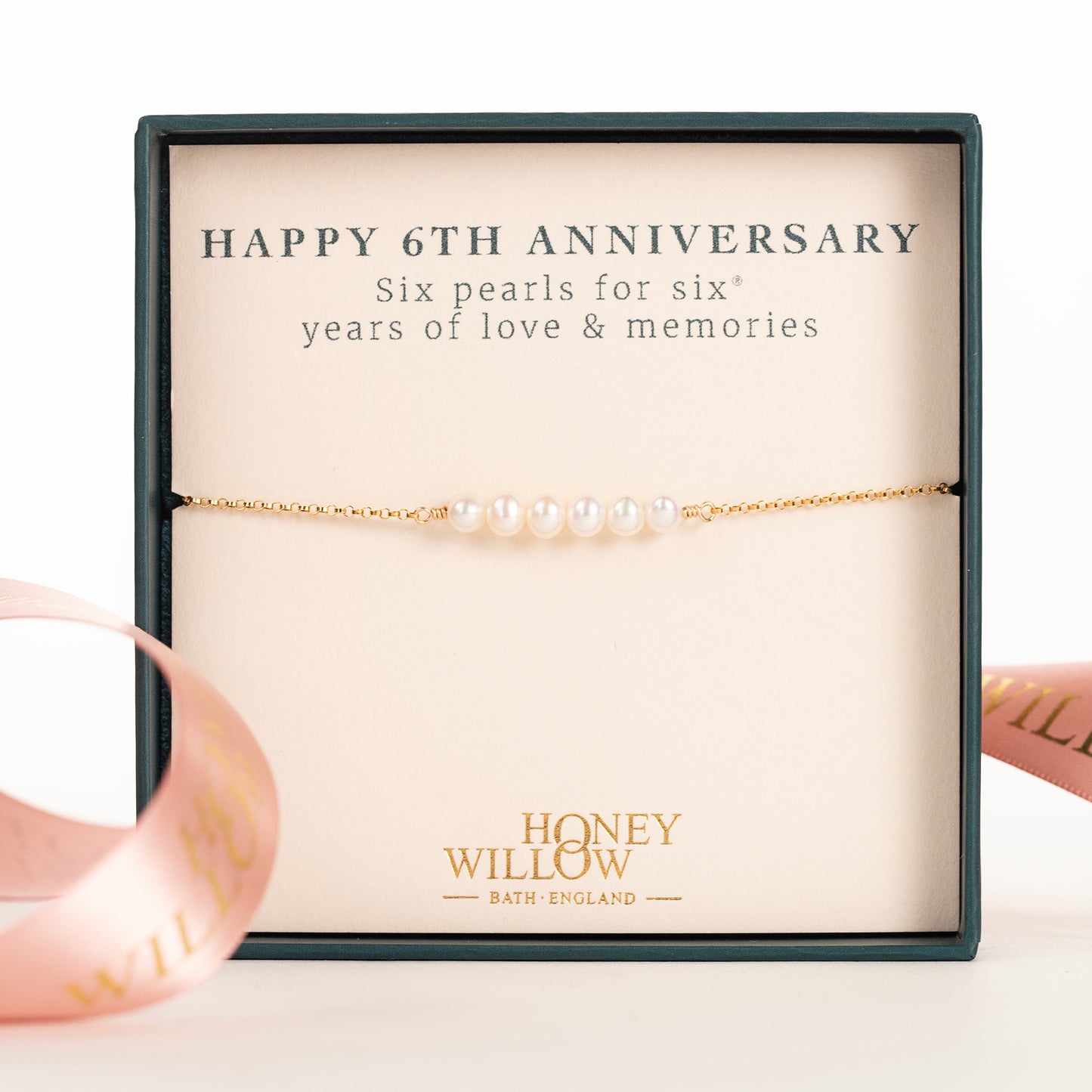 Celebrate your 6th anniversary with a delicate pearl bracelet - six pearls for six® years of love & memories.