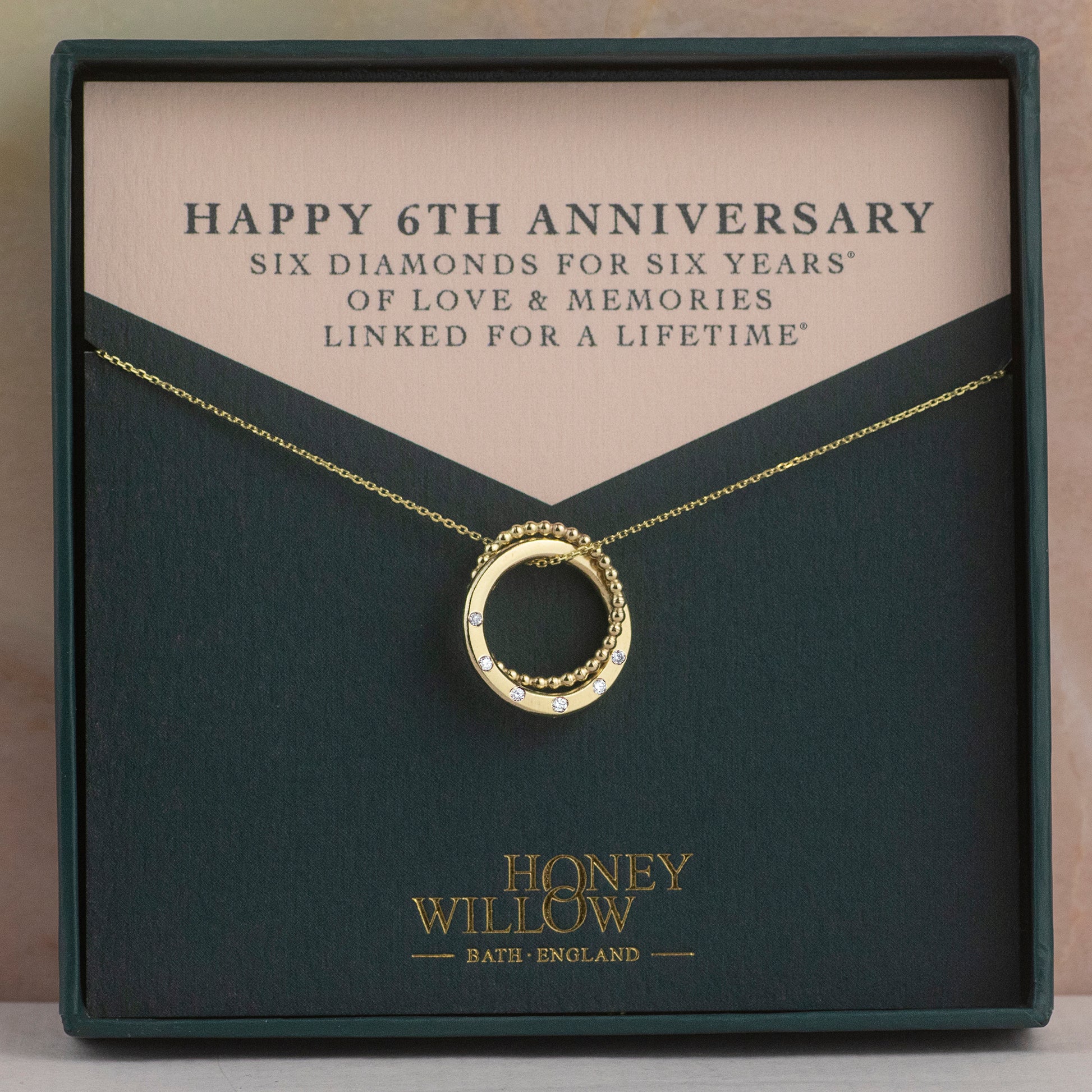 6th Anniversary Necklace - 6 Diamonds for 6 Years - 9kt Gold