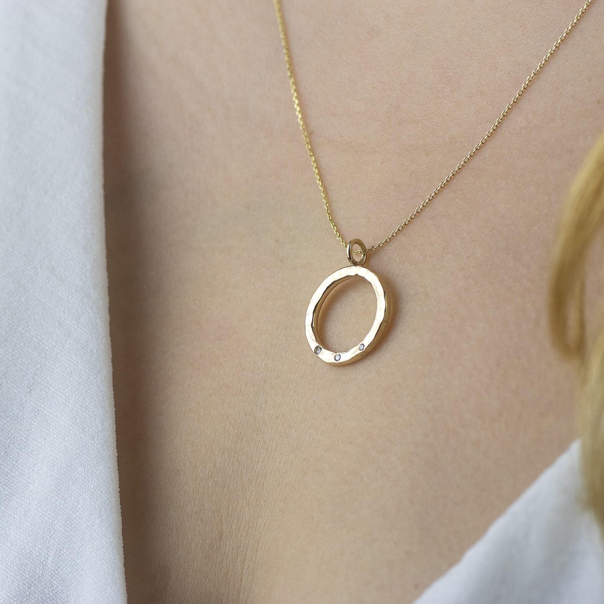 7th Anniversary Gift - 7 Diamonds for 7 Years Halo Necklace - 9kt Gold & Lab Grown Diamonds