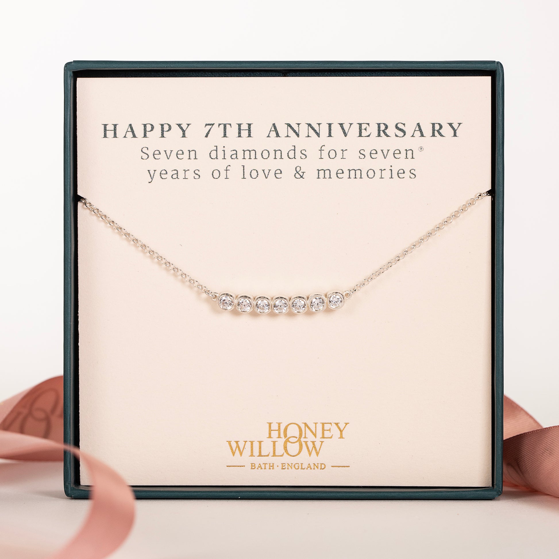 Give her a seven diamonds for seven® years necklace, designed and handmade in Bath, England. Honey Willow is a family business, founded in 2010.