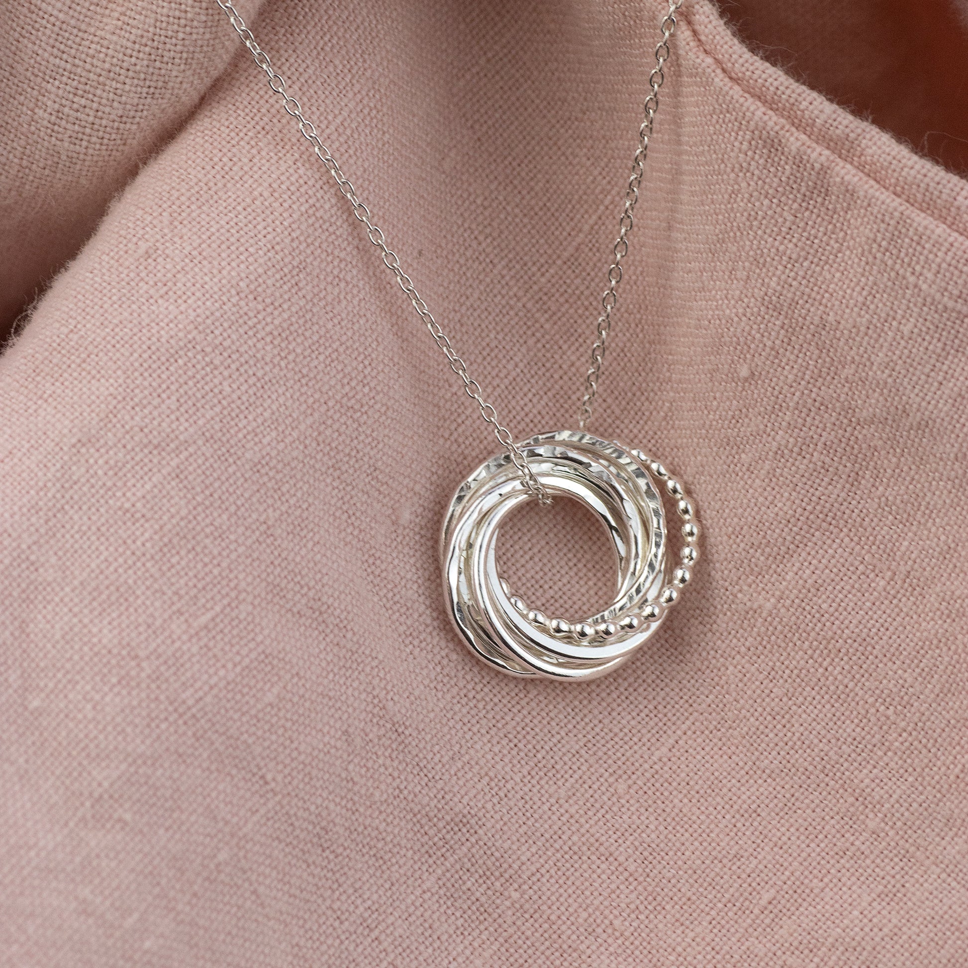 Treat your loved one to the original eight rings for eight years® necklace, designed and handmade in England with love and care for over a decade.