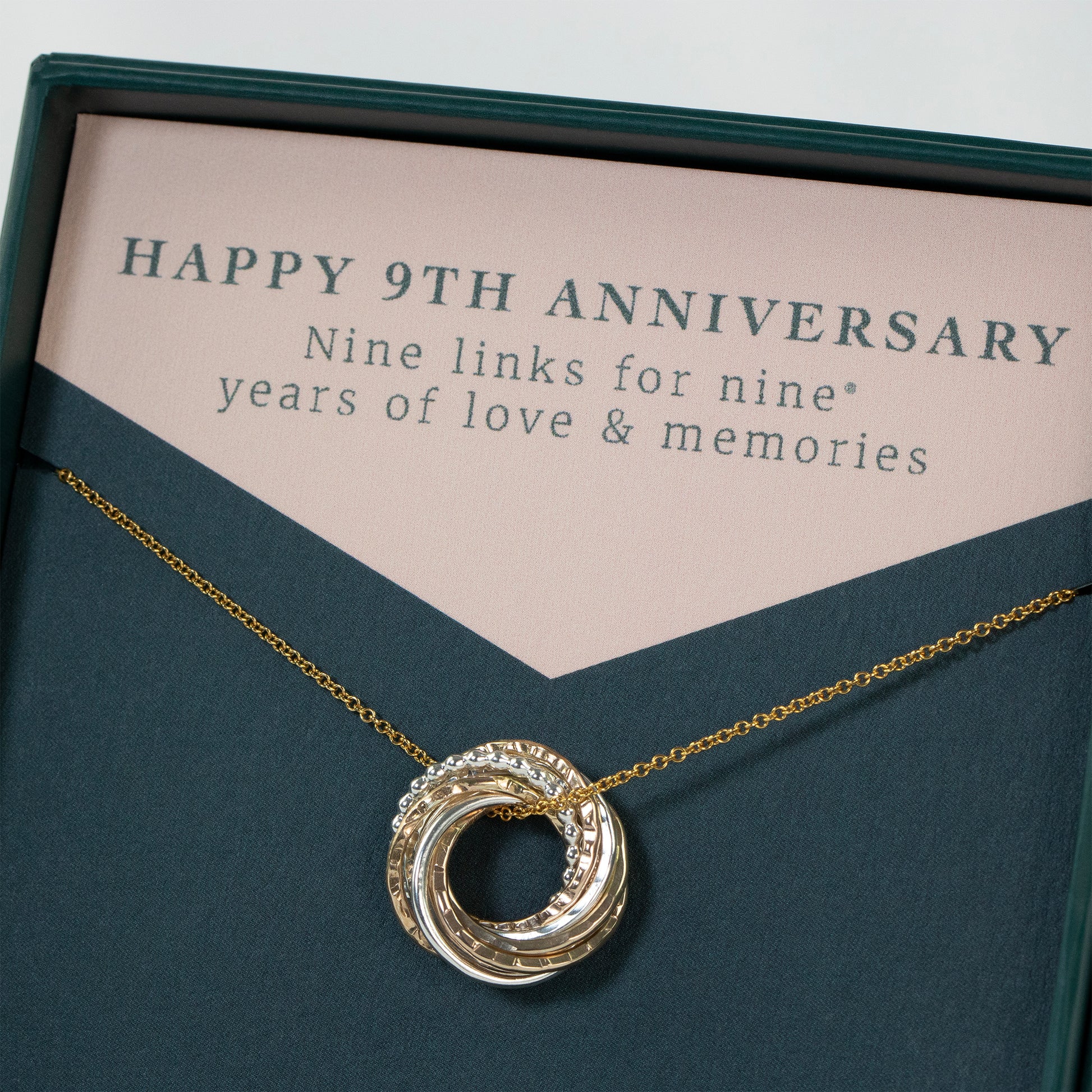 Celebrate your ninth anniversary with a nine rings for nine years® necklace.