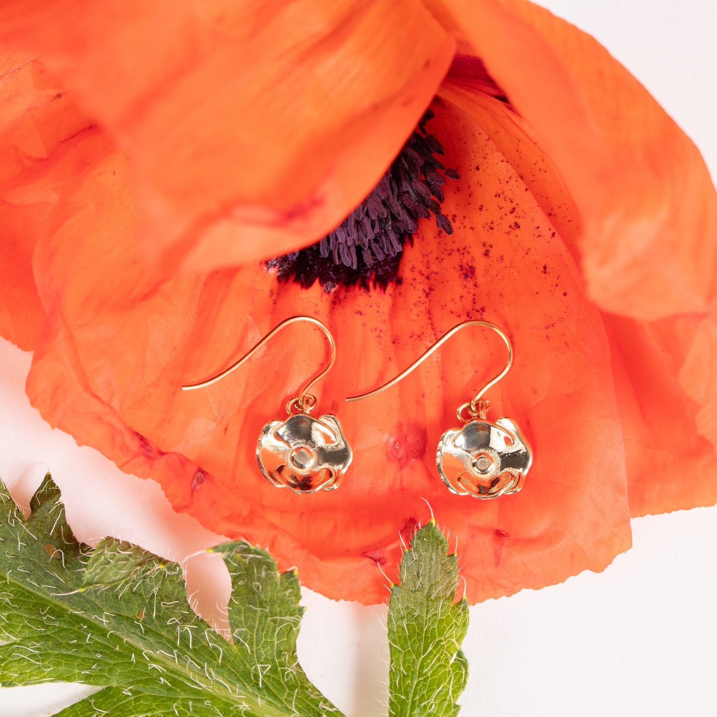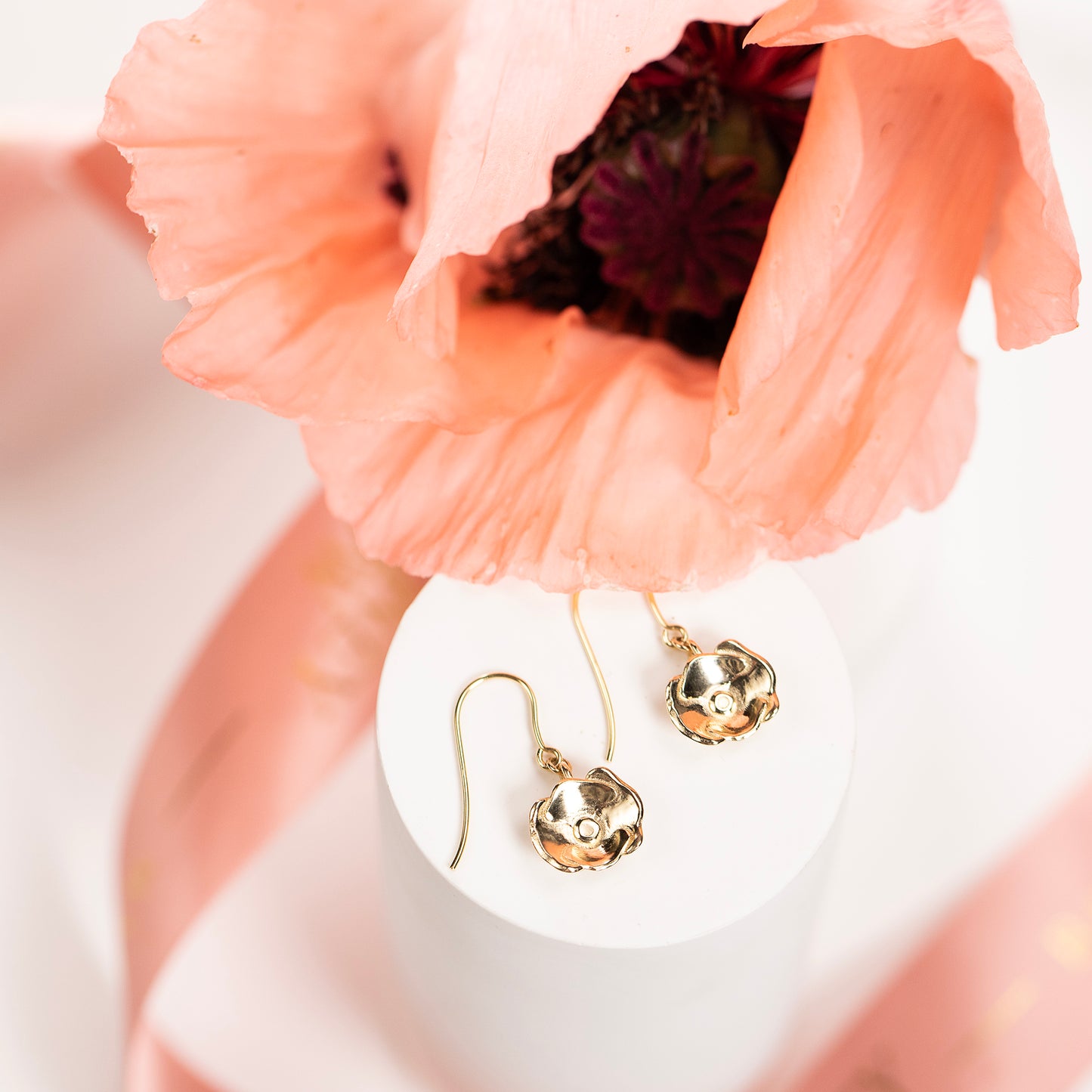 Celebrate her birth month with unique 9kt gold poppy flower earrings.
