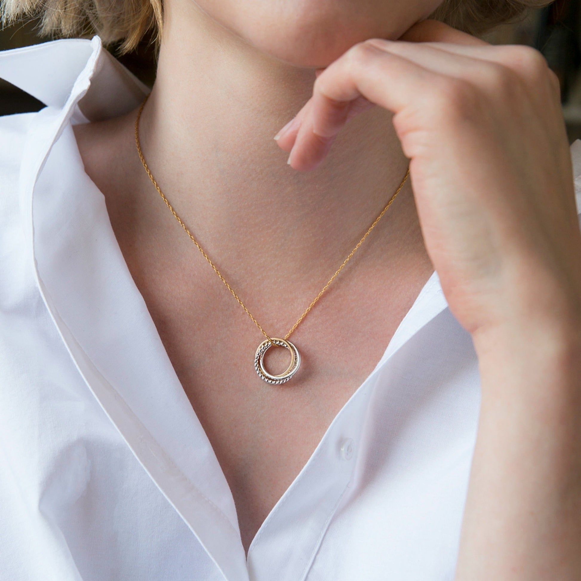 Celebrate the bond between aunt and niece with a set of two 9kt gold and silver necklaces, one for aunt and one for niece.