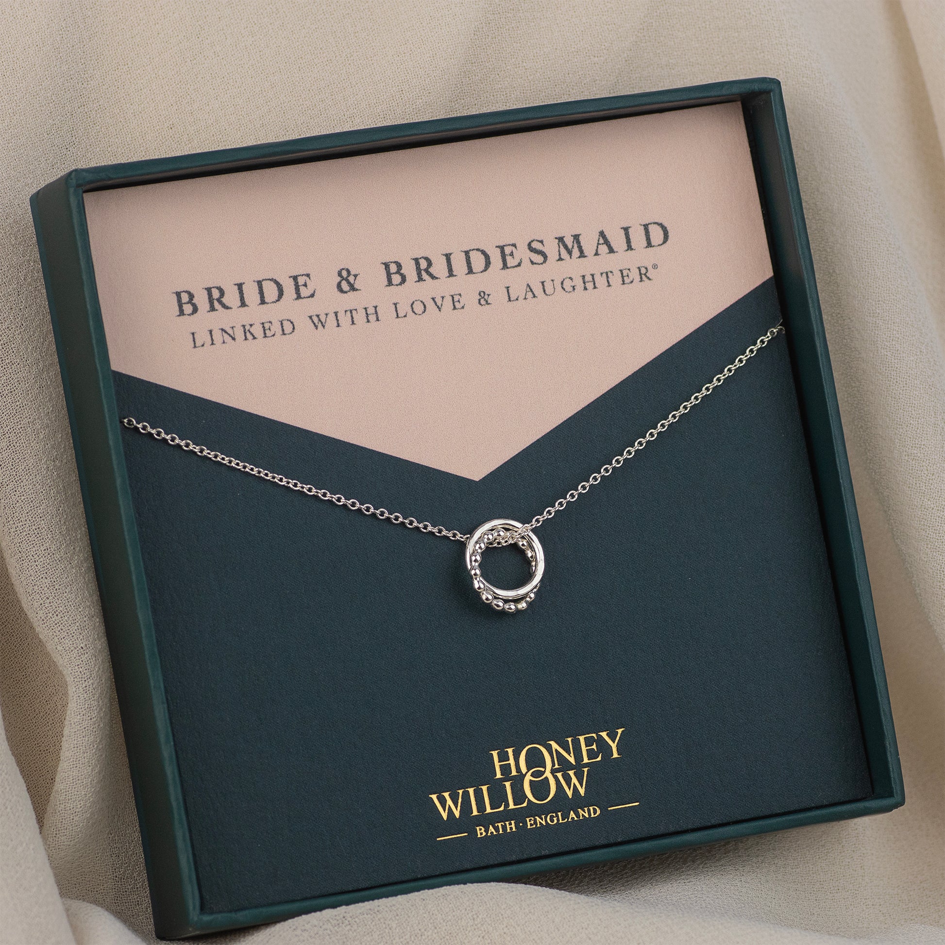 Celebrate the bond between bride and bridesmaid with a silver love knot necklace.