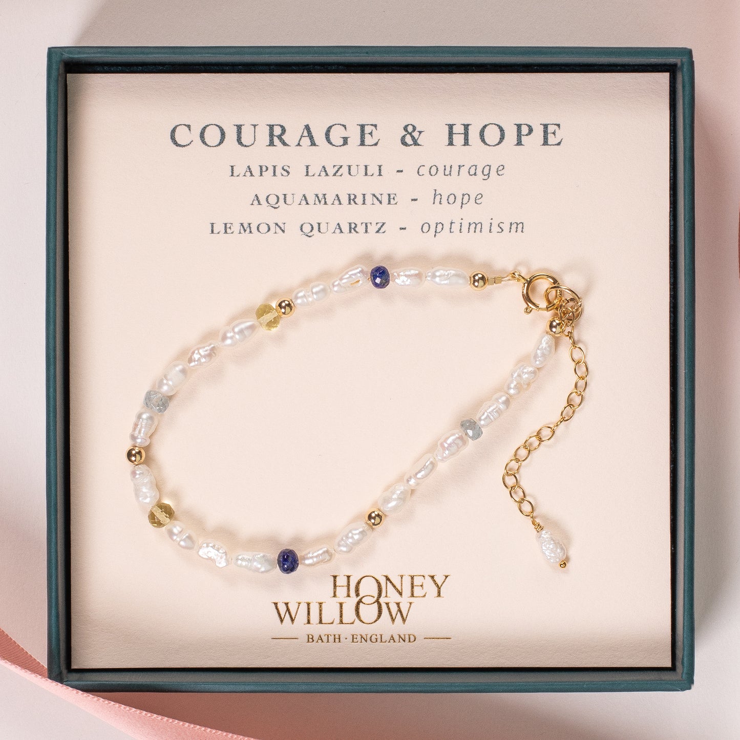 Celebrate and inspire her with a bracelet handmade with seed pearls and gemstones symbolising courage, hope and optimism.