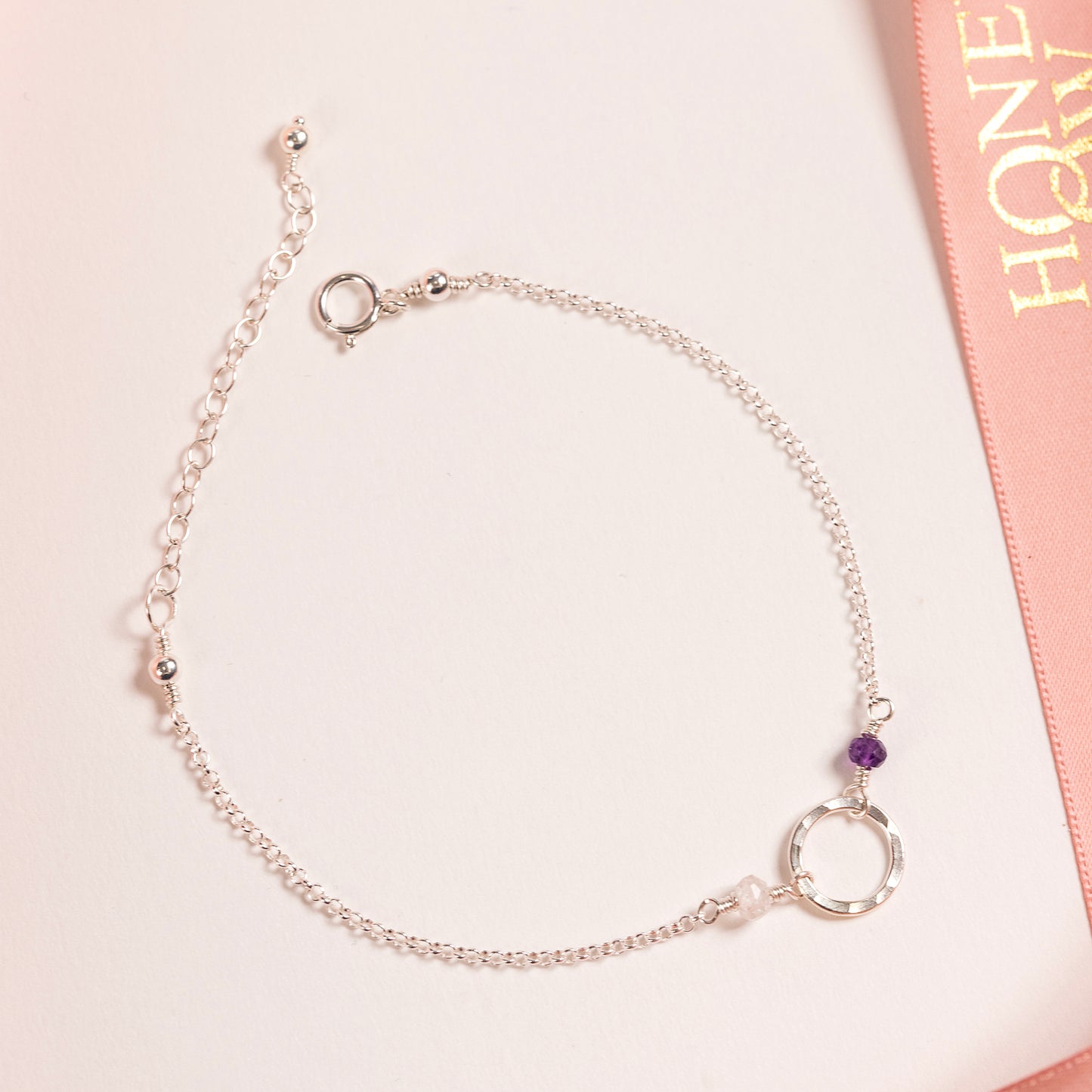 Circles symbolises infinite love, strength and unity. Two tiny birthstones sit on either side of the circle, see image 3 for birthstone examples.