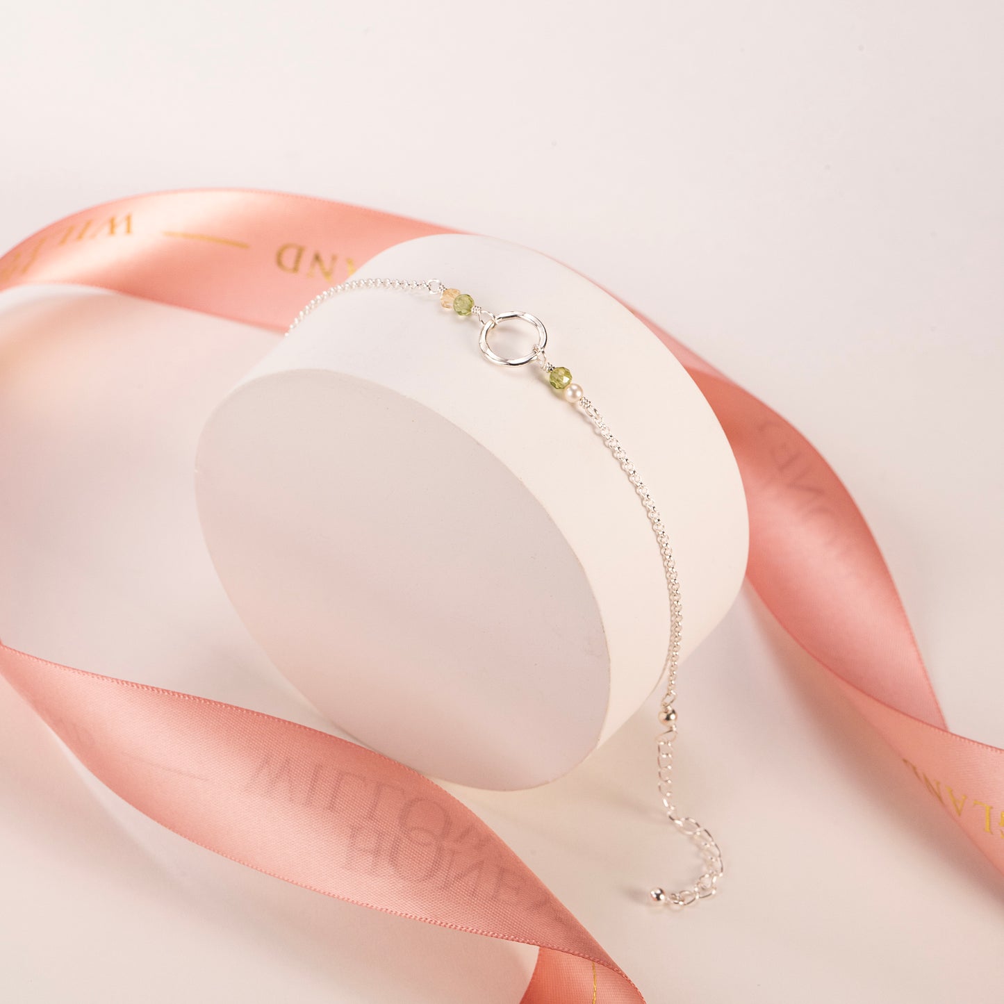 Circles symbolises infinite love, strength and unity. Four tiny birthstones sit on either side of the circle, see image 3 for birthstone examples.