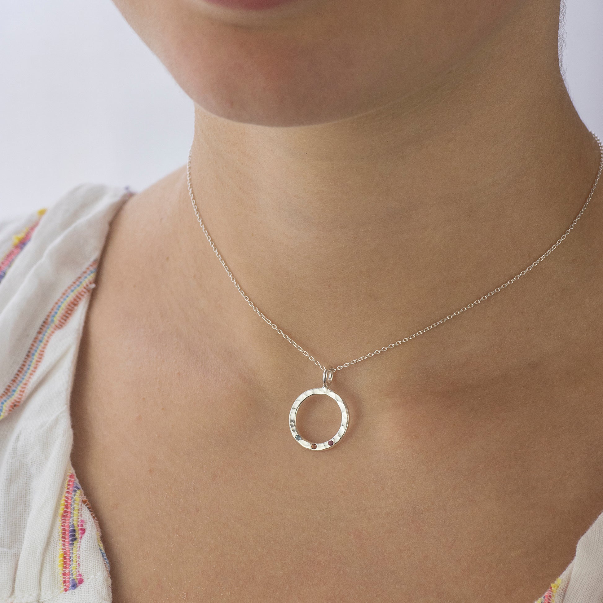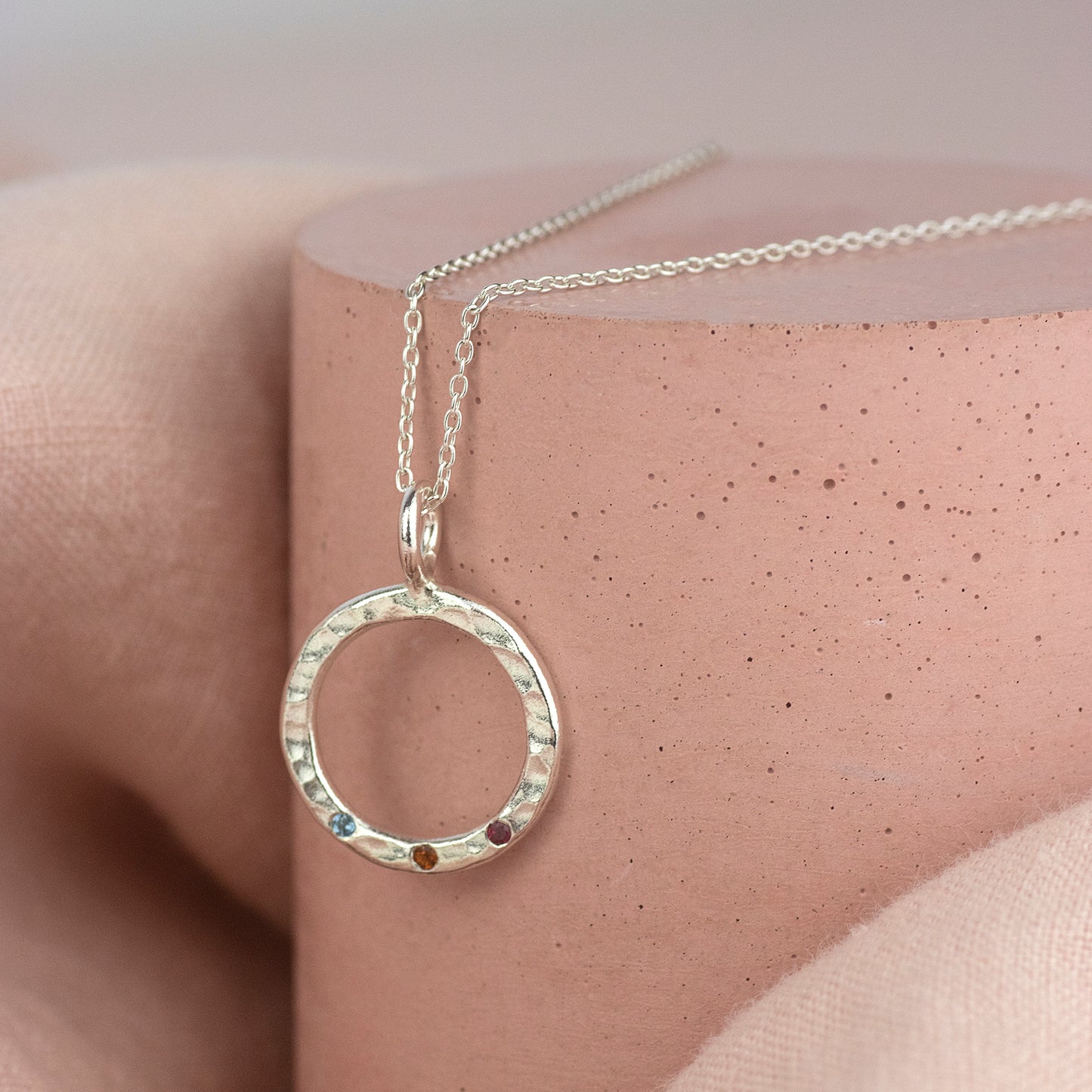Family Birthstone Halo Necklace - Silver - Birthstones for Loved Ones