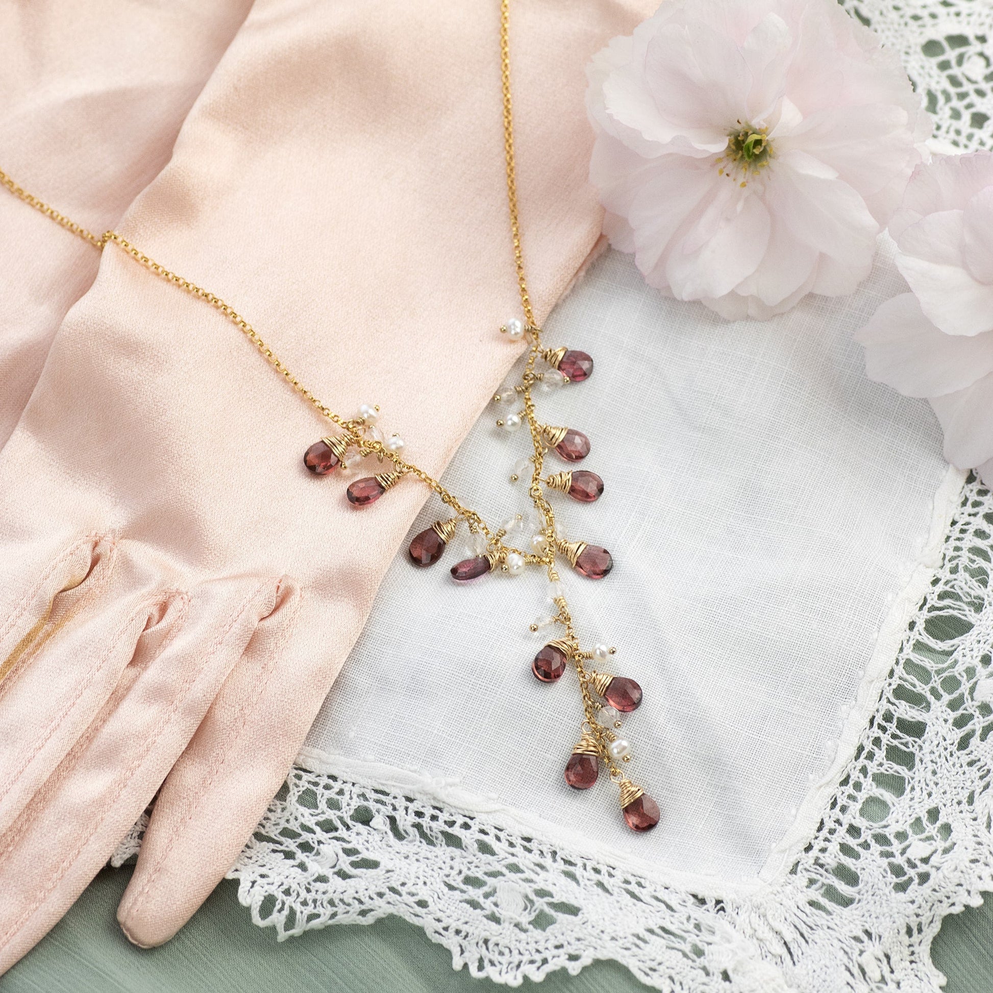 Garnet & Pearl Long Earrings - Bridgerton Inspired - Agatha