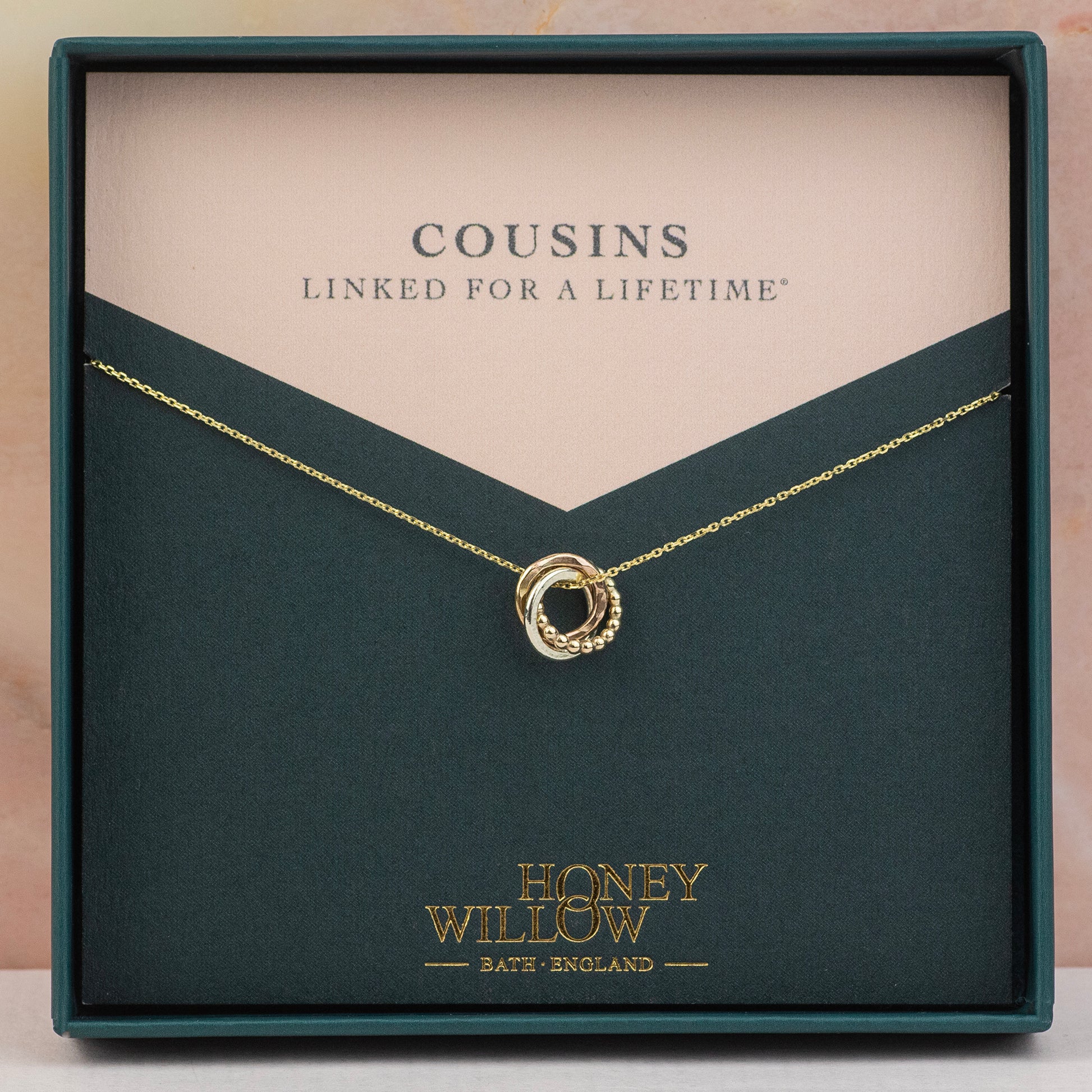 Give your friend the original three links for three® cousins necklace, designed and handmade in Bath, England. Honey Willow is a family business, founded in 2010.