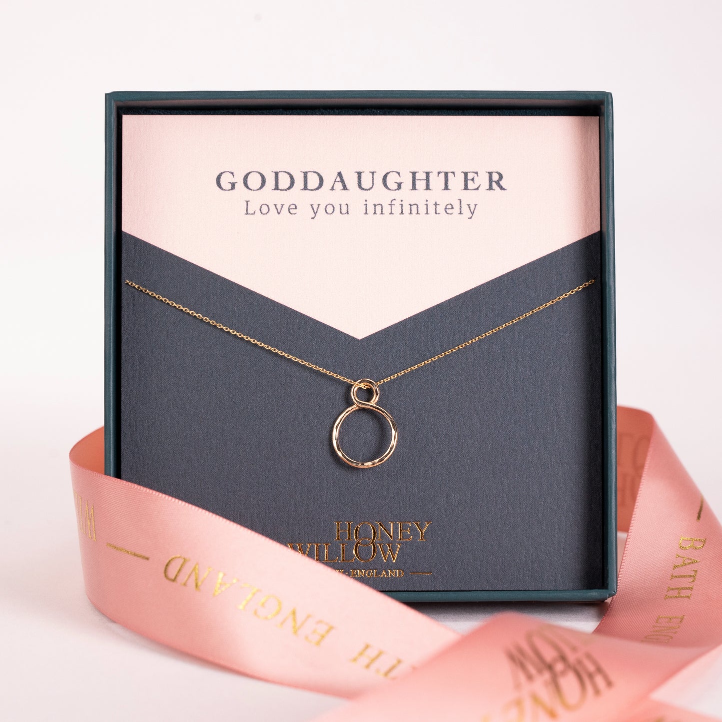 Show your eternal love for your goddaughter with a handmade 9kt infinity pendant.