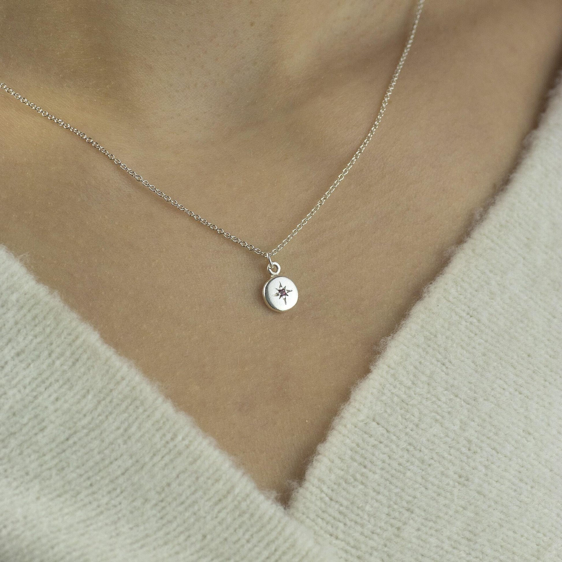 Gift for Goddaughter - Tiny Birthstone Star Set Pendant - Silver