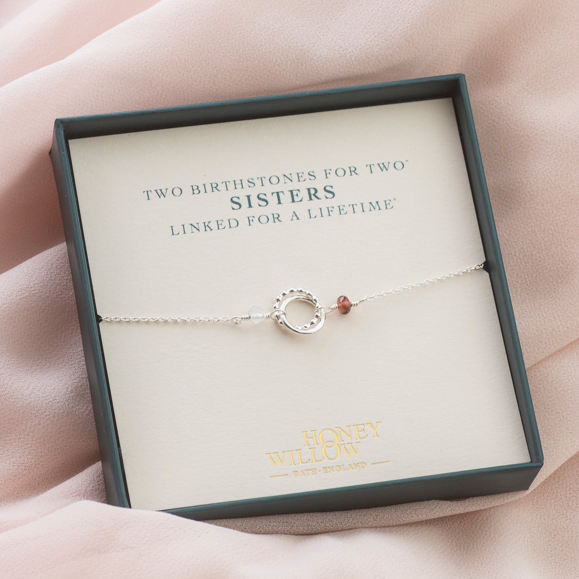 Gift for Sister - Double Birthstone Love Knot Bracelet