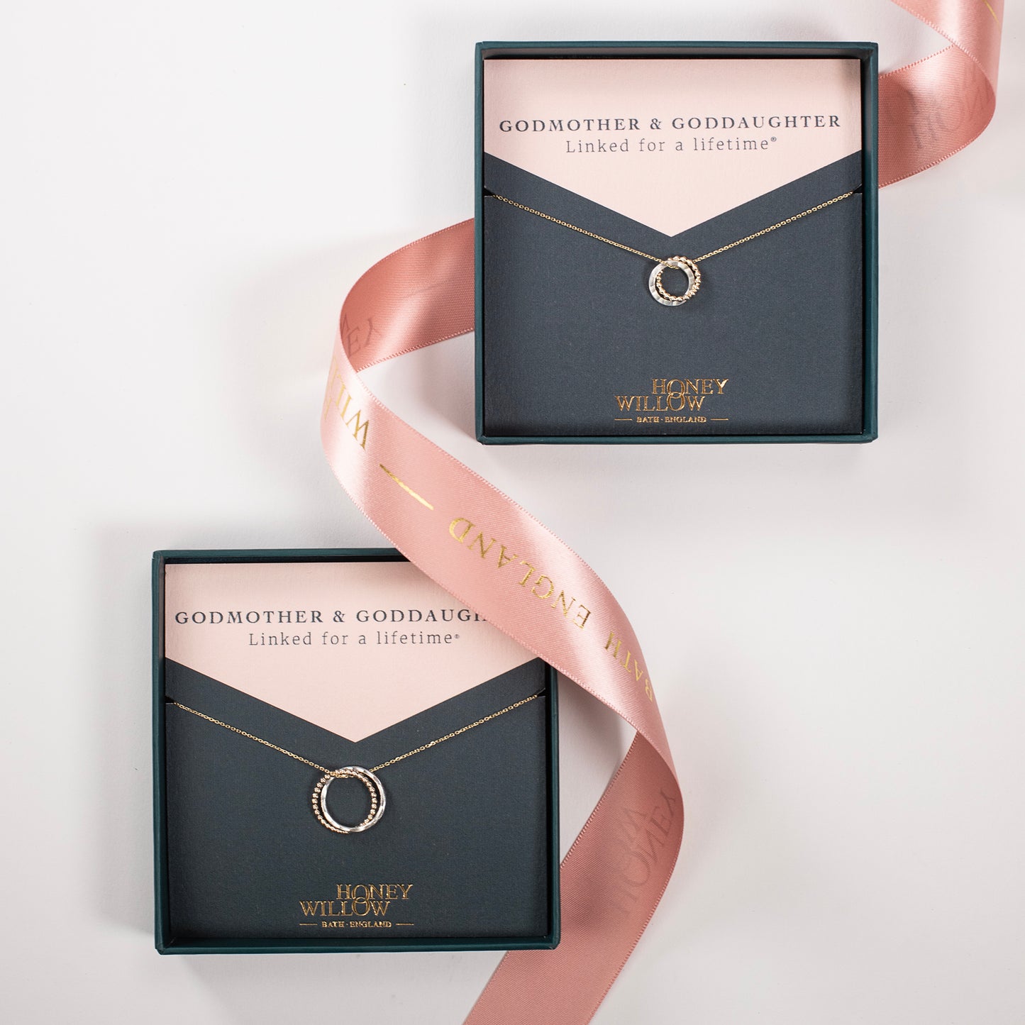 Celebrate the bond between godmother and goddaughter with a set of two 9kt gold and silver necklaces.