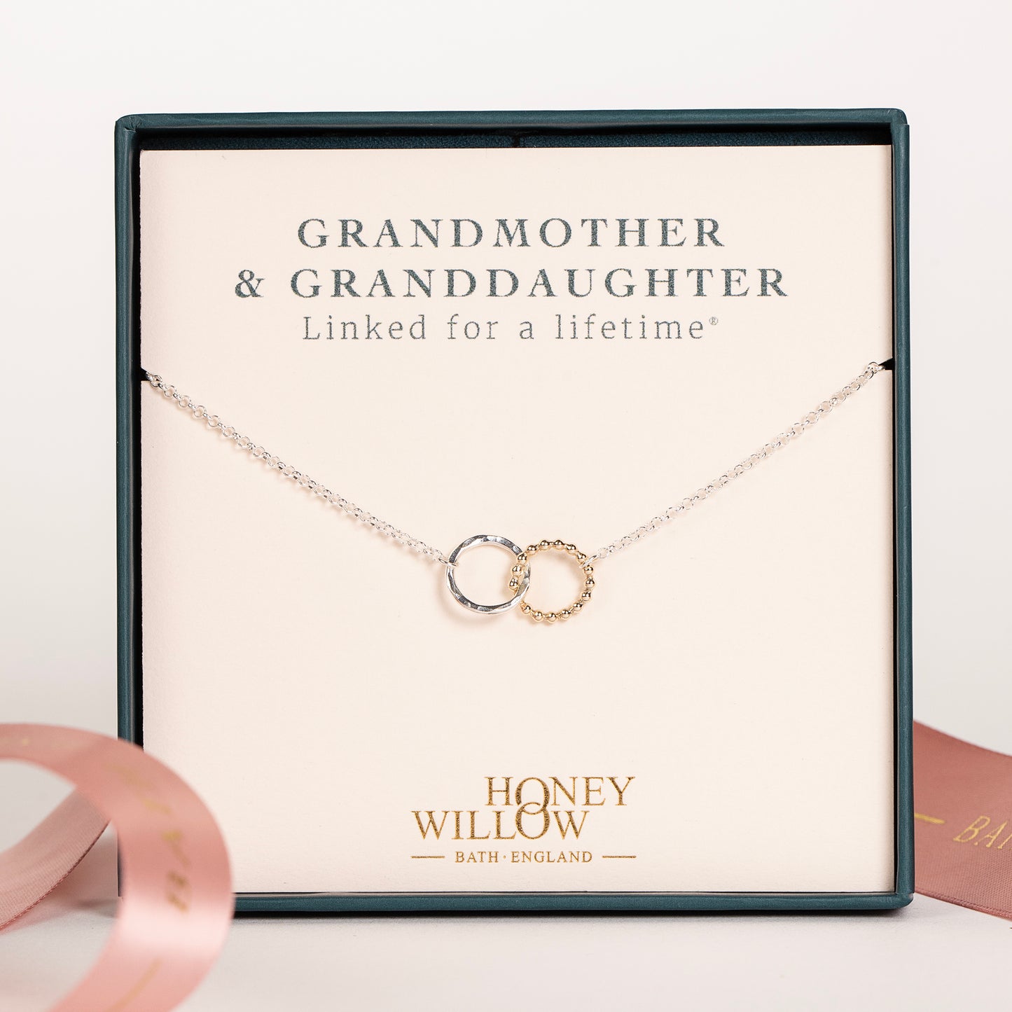 Celebrate the bond between grandmother and granddaughter with a dainty 9kt gold and silver necklace, symbolising that you are linked for a lifetime®.
