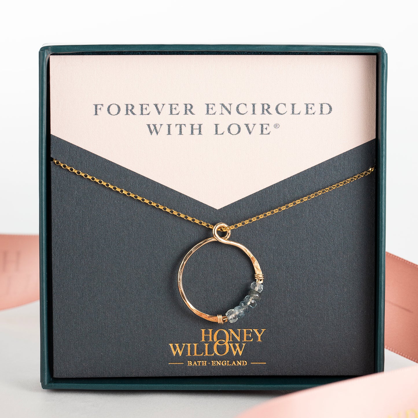 Show your love for her with an infinity pendant, handmade with her birthstone, in either silver or gold.