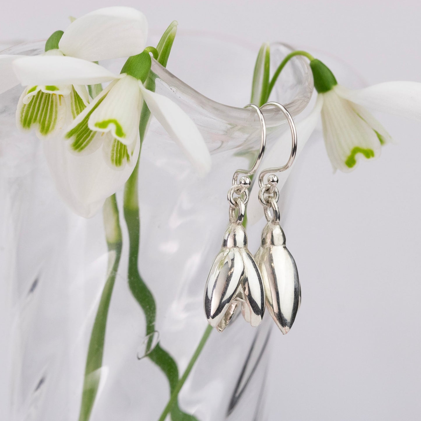 January Birth Flower & Birthstone Earrings - Snowdrop - Silver