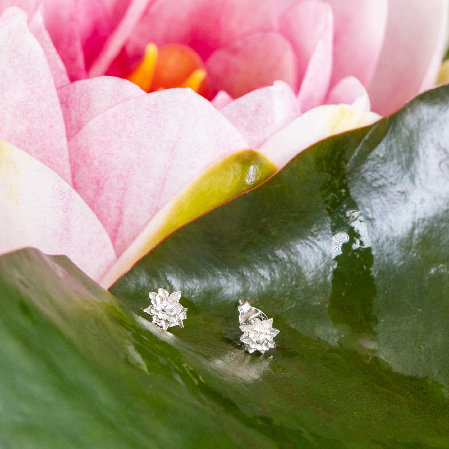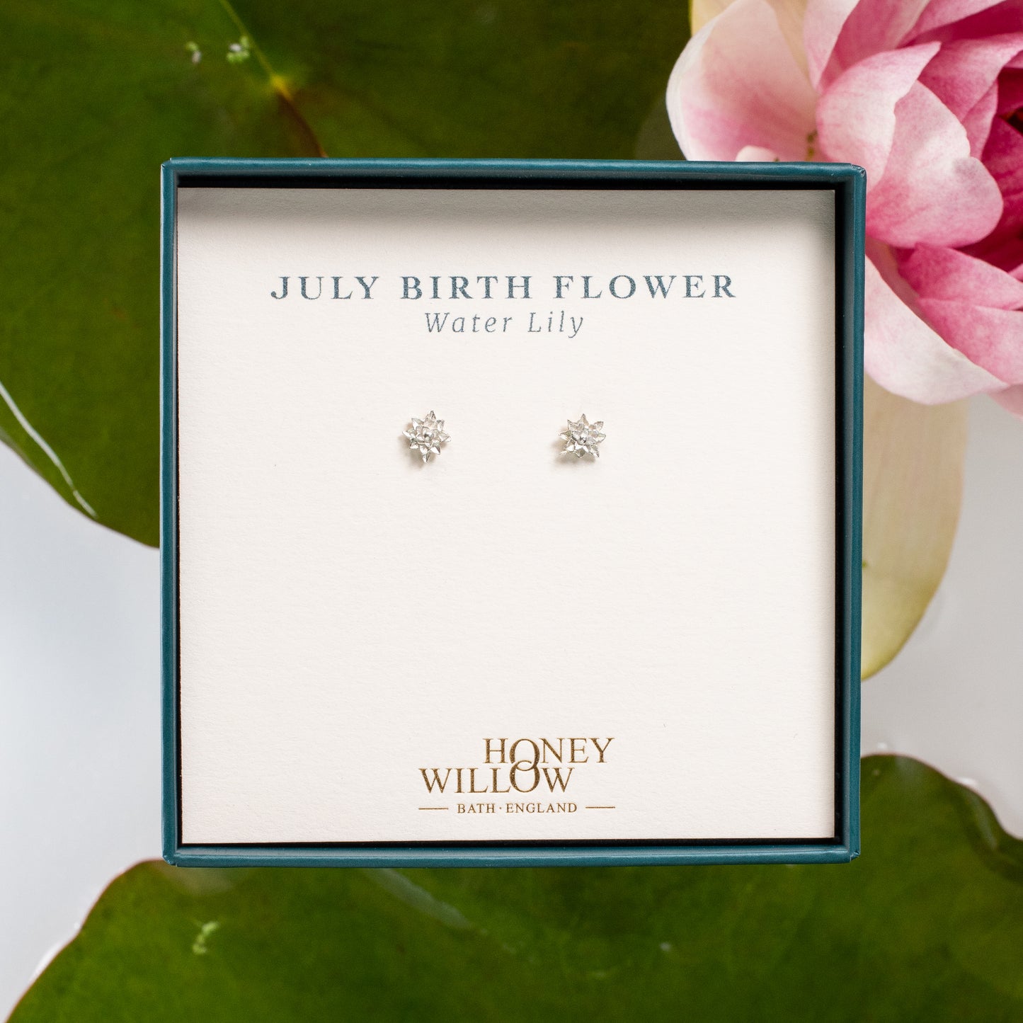 July Birth Flower Stud Earrings - Waterlily - Silver