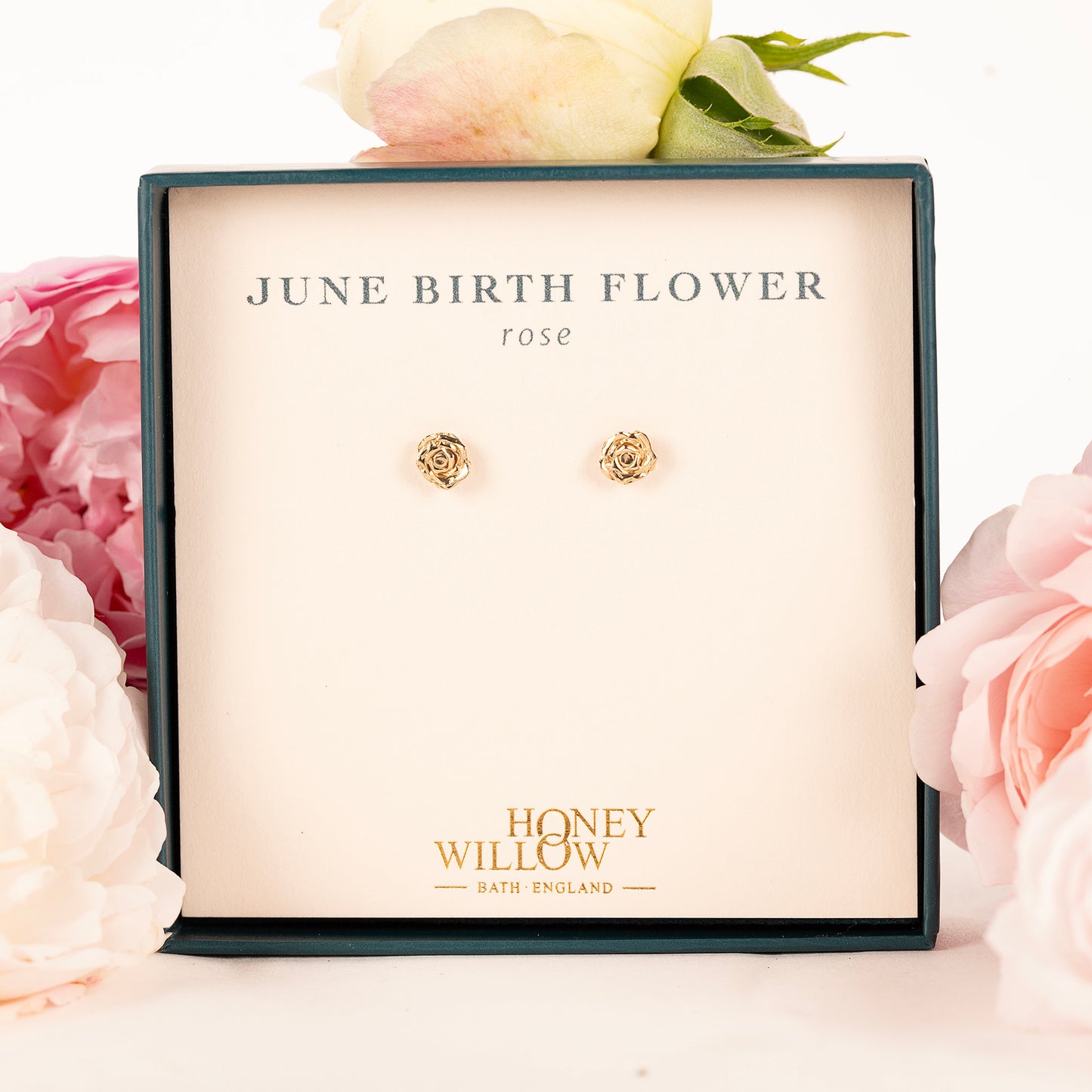 June Birth Flower Earrings - Rose Studs - 9kt Gold