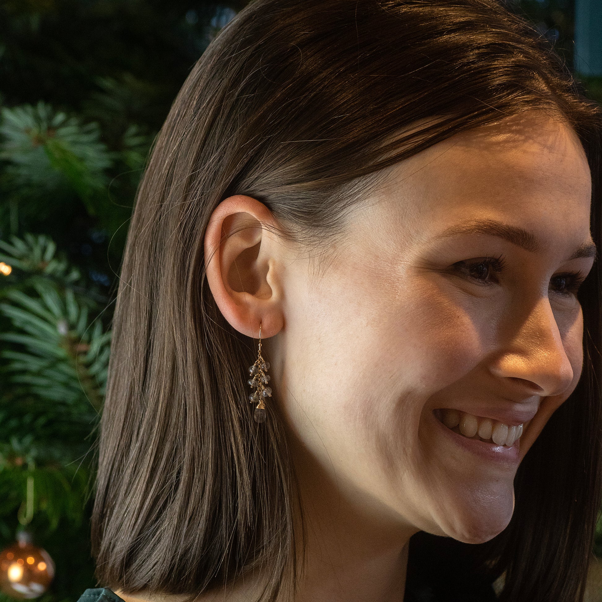 Give her a meaningful gift that celebrates and inspires her. These gemstone cluster earrings are handmade with labradorite stones, which symbolise perseverance.