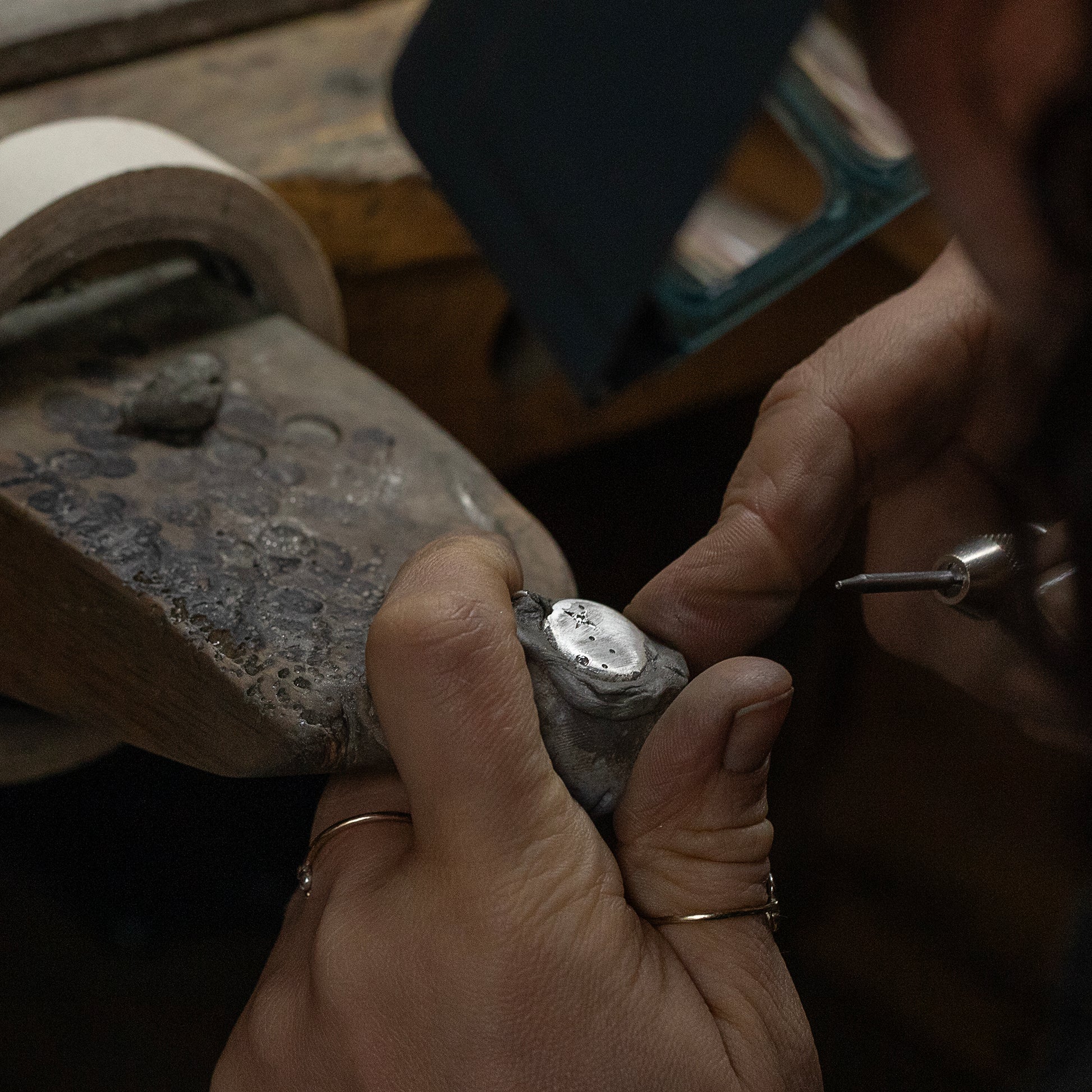 Handmade to order with recycled silver and two lab-grown diamonds. A lab-grown diamond is made from the same material as a mined diamond, but without the ethical and environmental problems.