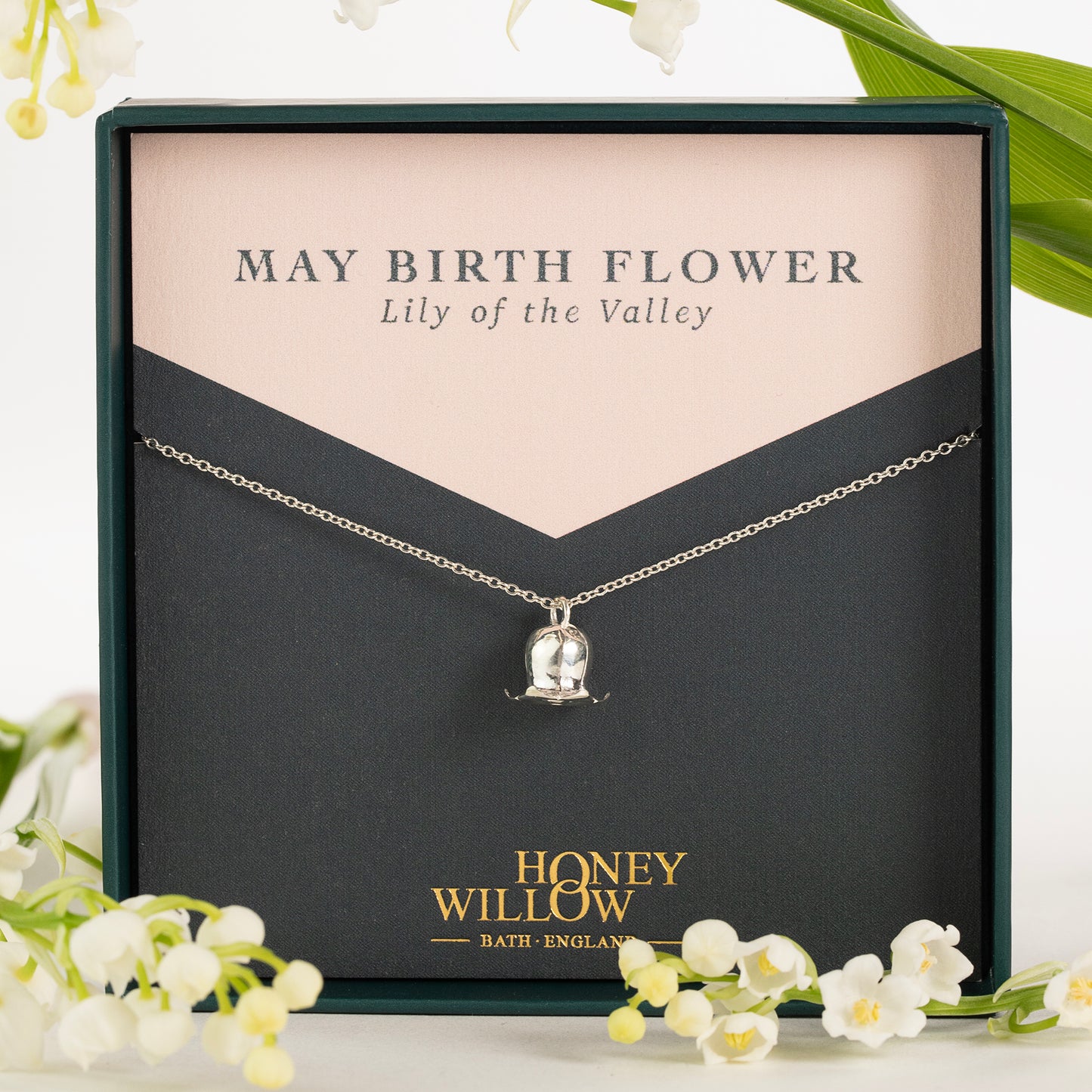 May Birth Flower Necklace - Lily of the Valley - Silver